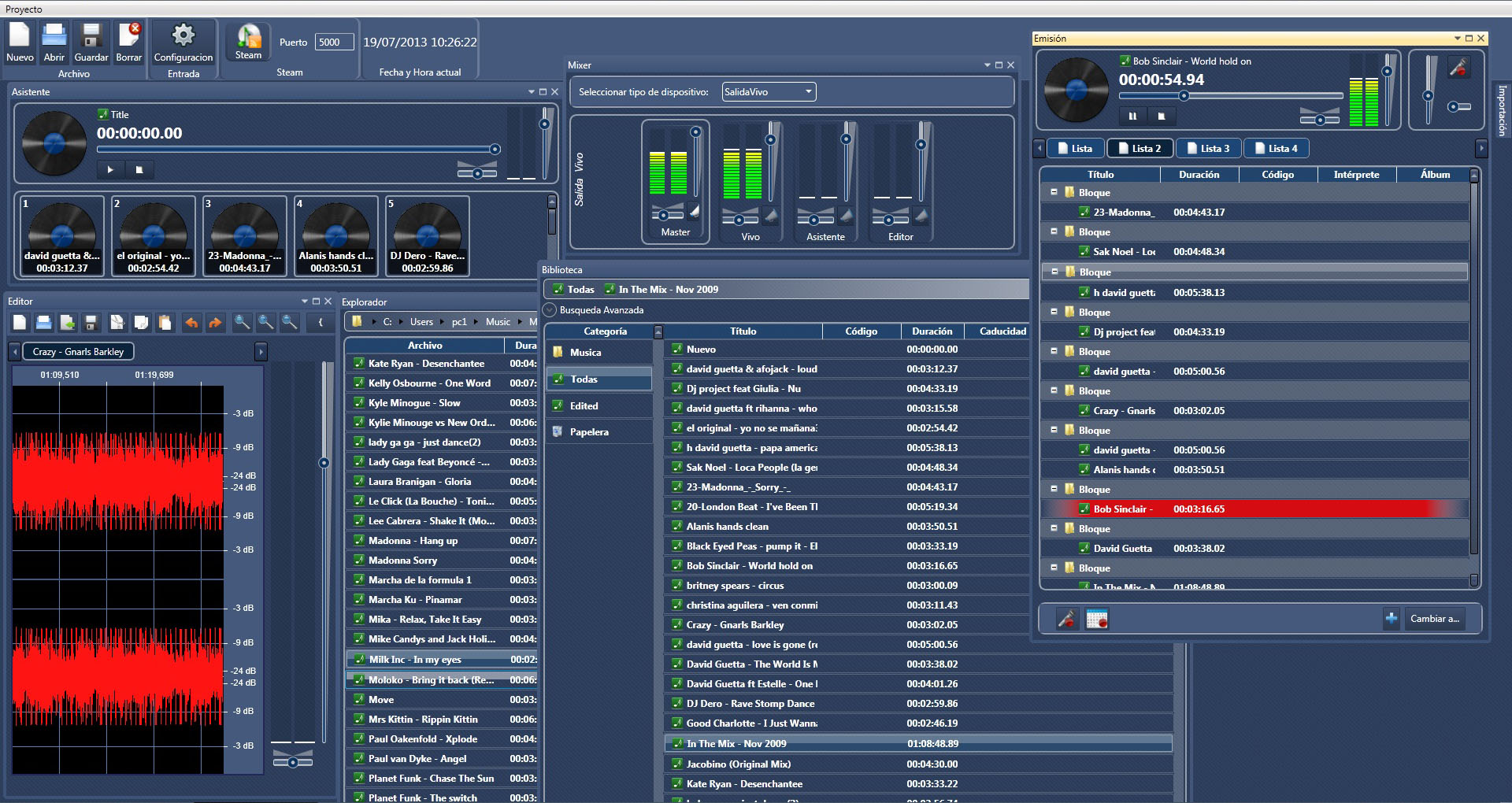 Esta herramienta también permite armar, en tiempo real, una lista de temas musicales secuenciados de forma tal que al terminar un tema comience otro en forma ininterrumpida. También ésta secuencia es plausible de ser almacenada y reproducida en tiempos diferidos, o en su defecto, en tiempo real y en vivo.